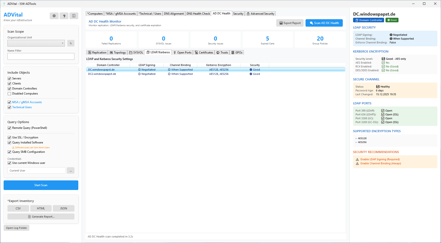 Die Lösung: ADVital scannt Ihre gesamte AD-Umgebung in Minuten und liefert: