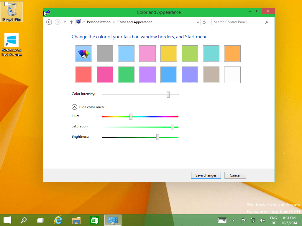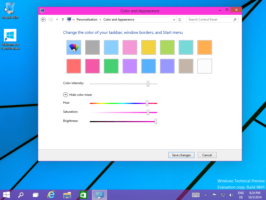 Windows 10 – Taskbar Fenster Ränder Start Menü anpassen 5. Oktober 2014 Jörn Walter Windows 10 Taskbar Fenster Ränder Start Menü anpassen In Windows 10 können wir die Farbe und Intensität nach Wunsch anpassen. Farbton, Sättigung und Helligkeit sorgen für ein frisches Aussehen.