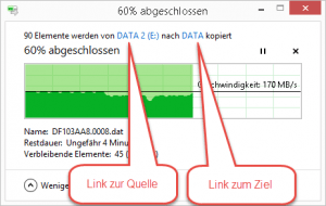 Windows 8.1 Kopiervorgang Quelle Ziel Verlinkung 20. Juni 2015 Jörn Walter Windows 8Kopiervorgang Quelle Ziel VerlinkungFür den schnellen Zugriff auf das Quell- und Zielverzeichnis während des Kopiervorgangs, können wir mittels der vorhandenen Verknüpfungen auf die Verzeichnisse zugreifen.