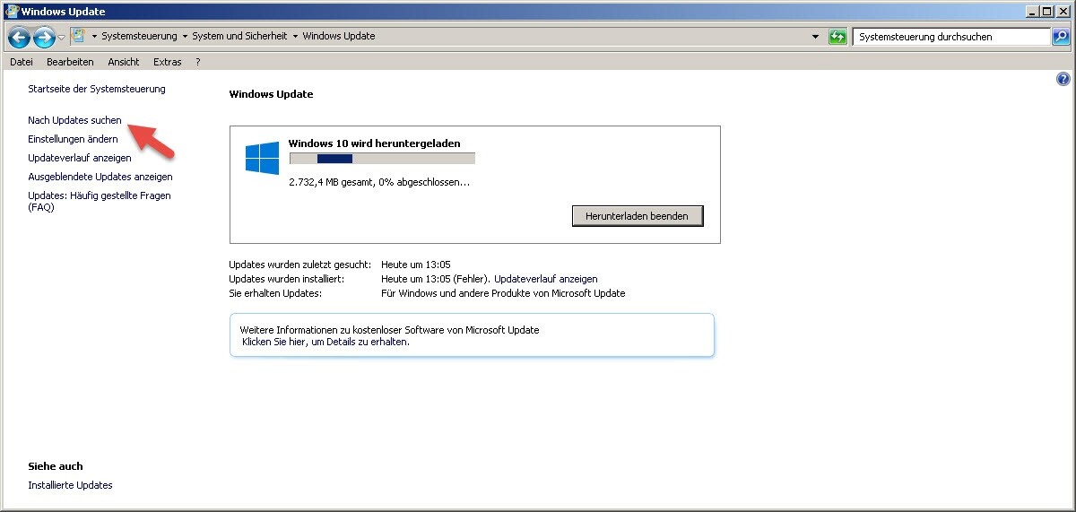 Jetzt sollte das Upgrade erneut starten, wenn nicht dann starten Sie die Suche nach Upates manuell nach.