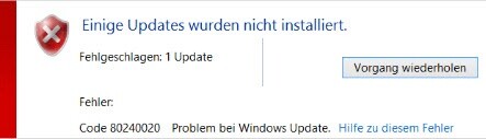 Wenn auch Sie nach dem Download sprich während der Installation den Fehlercode 80240020 erhalten,