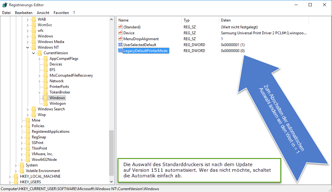 Windows 10 Version 1511 Standarddrucker Automatik deaktivieren 28. Februar 2016 Jörn Walter Windows 10 Version 1511 Standarddrucker Automatik deaktivieren