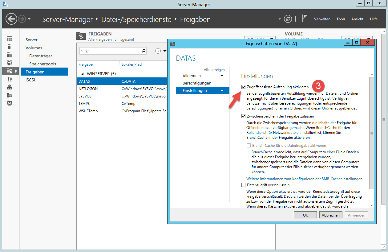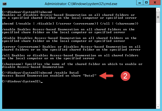 Einzelnes Share aktivieren: abecmd /enable Data$