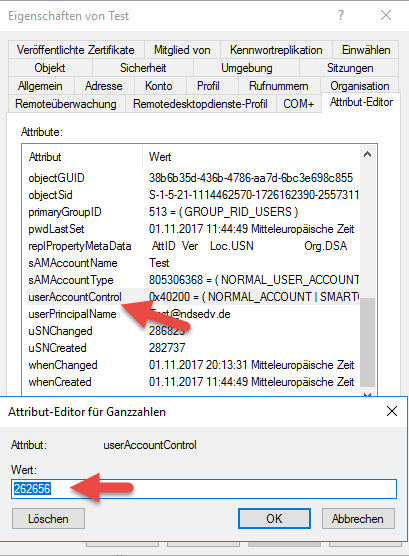 Mit diesen Beispiel-Skripten setzten wir einen neuen Wert für das Attribut UserAccountControl. Ich setze das gerne schon mal als Task ein, um sicherzustellen, das User aus welchen Gründen auch immer das Flag (never expires) gesetzt bekommen haben und vergessen wurde es zu entfernen.