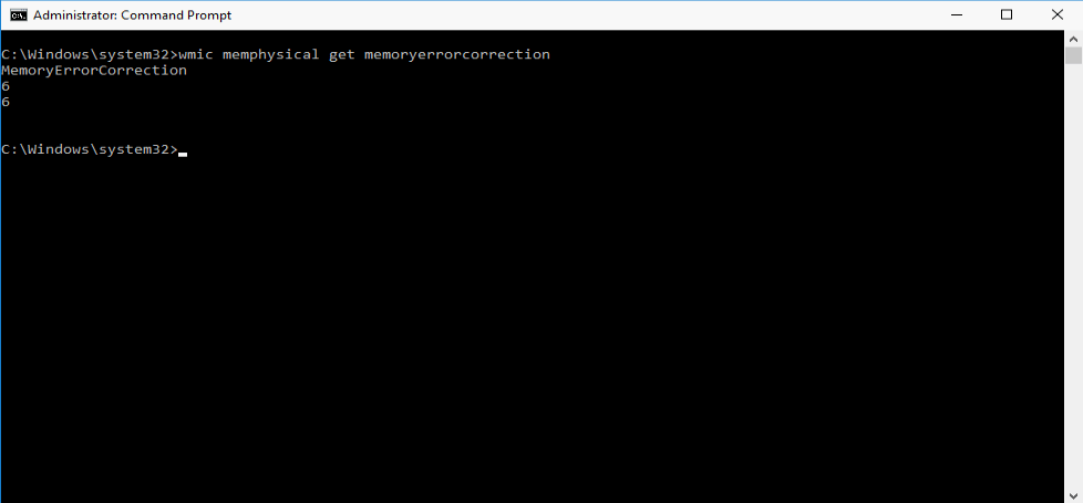 Wer überprüfen möchte ob sein System mit ECC (Error Correction Code) arbeitet, kann den Status mittels WMIC abfragen. Wird der Wert = 3 zurückgegeben, dann steht die Funktion nicht zur Verfügung.