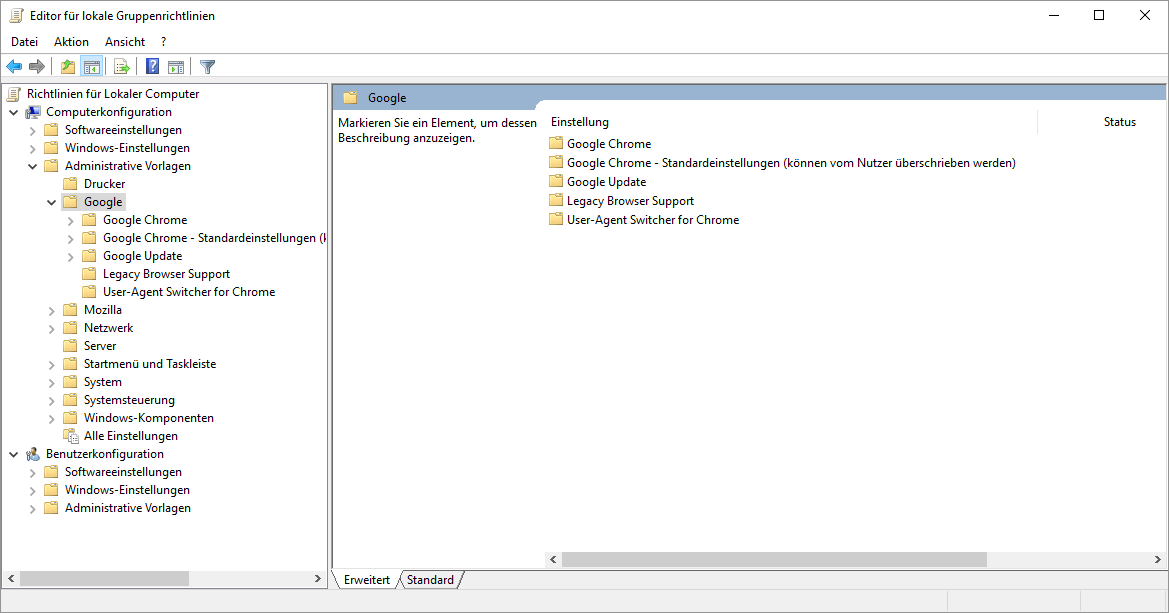 Ansicht der Richtlinien über den Gruppenrichtlinieneditor.