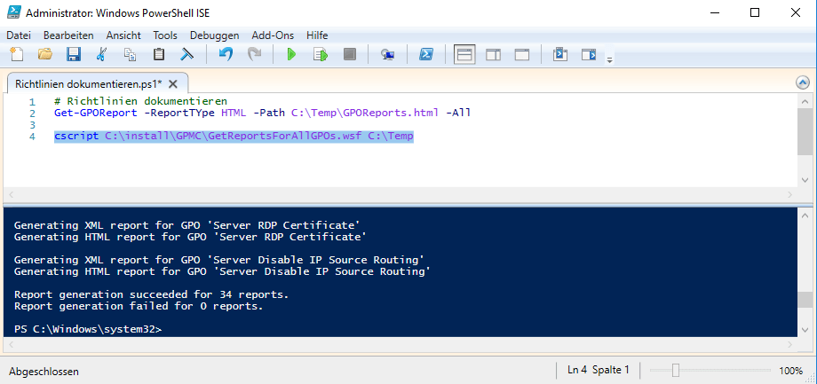 cscript C:\install\GPMC\GetReportsForAllGPOs.wsf C:\Temp