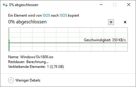 Erhöhe ich diese auf 10 MB/s, auch während des Kopiervorgang sieht das Ganze schon besser aus.