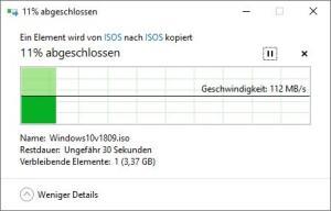 Aktuell kopiere ich auf meine NAS mit einer Geschwindigkeit von 112 MB/s.