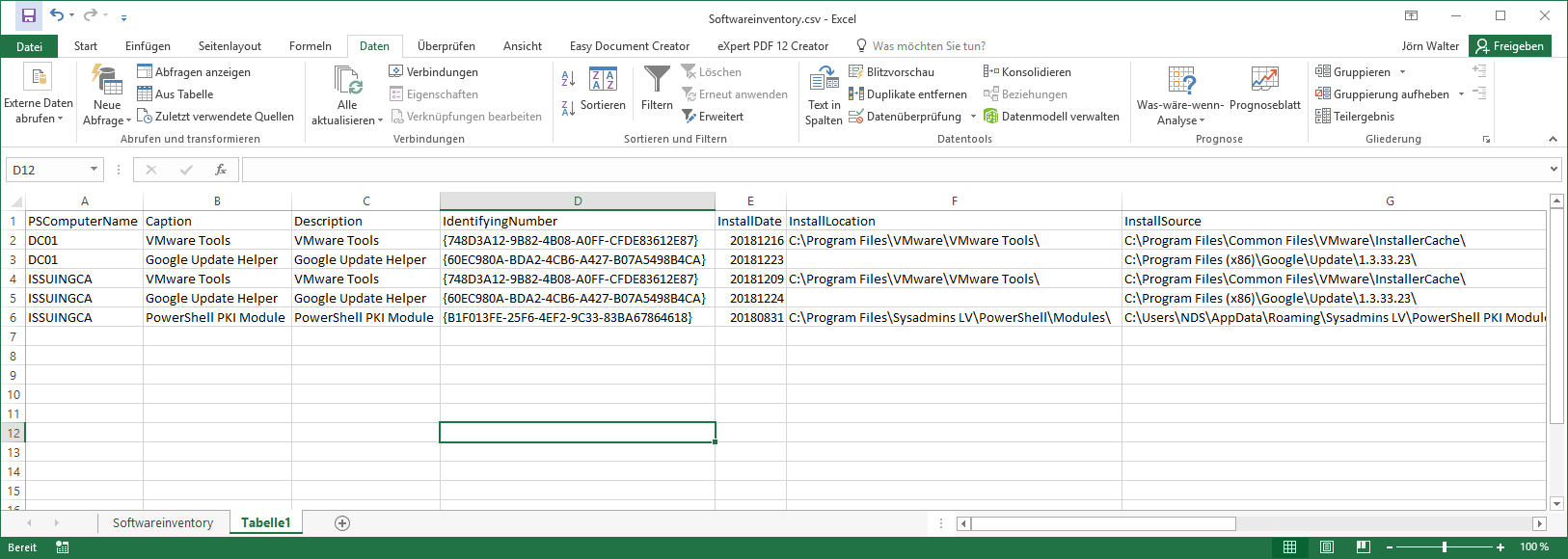 Powershell Software Inventory 1. Januar 2019 Jörn Walter SkriptePowershell Software InventurMit einem Einzeiler lassen sich nicht Microsoft-Produkte im Nu inventarisieren und in eine .csv Datei übergeben.Powershell anzeigenGet-Content “Computernamen.txt” | foreach {Get-wmiobject -computername $_ -query “SELECT * FROM Win32_Product where not Vendor like ‘%Microsoft%'” } | export-csv “Softwareinventory.csv” -notypeinformation