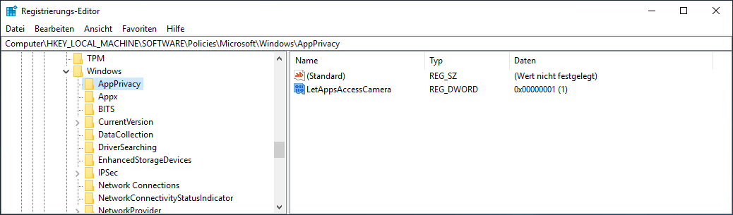 Über einen Eingriff in die Registry, verbieten wir Apps die Nutzung der Kamera oder erlauben es wieder.