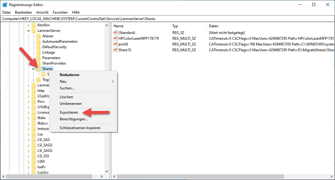Freigaben und NTFS Berechtigungen migrieren übertragen