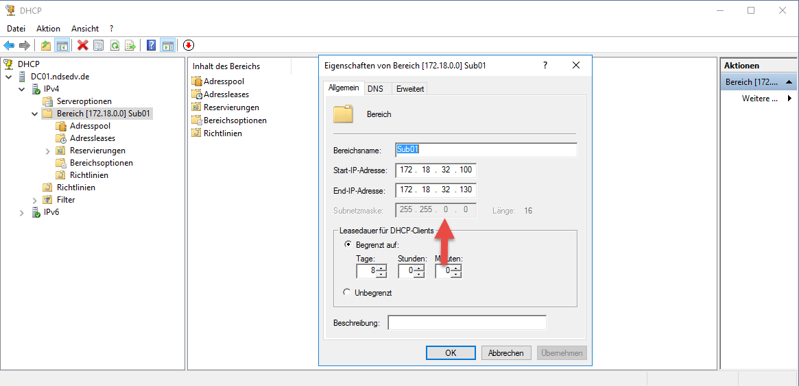 Die DHCP Scope Subnetzmaske im nachhinein ändern