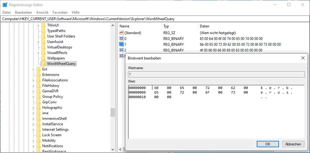 Wenn wir mithilfe des Windows Explorers etwas in unseren Verzeichnissen suchen, bleiben die Schlüsselwörter der Suche in der Registry gespeichert. In der Regel die letzten 10 gesuchten Begriffe.