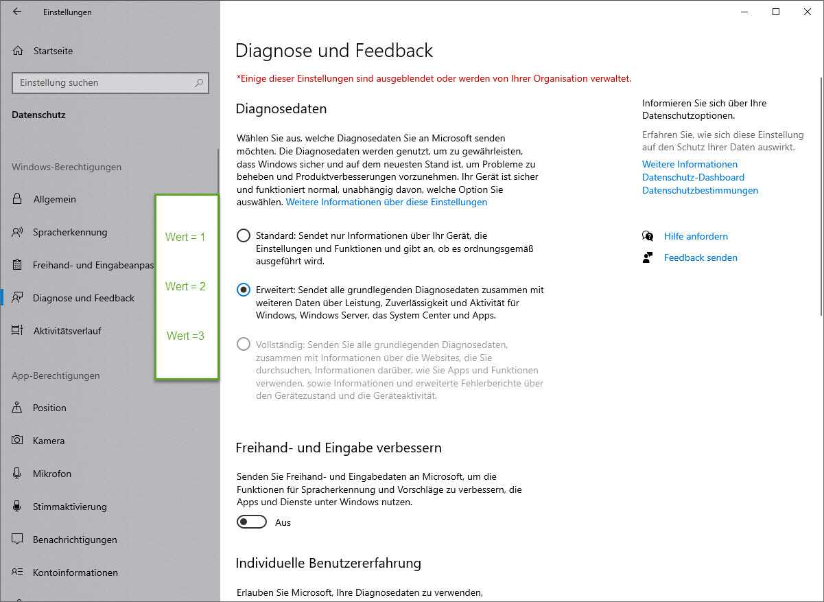 Windows 10 Diagnosedaten Vollständig ausgegraut anpassen
