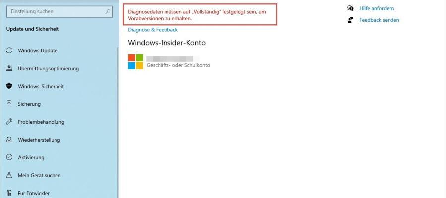 Wer am Windows 10 Insider Programm teilnehmen möchte, muss zur Vorbereitung unter anderem die Diagnosedaten (Sammlung) auf Vollständig einstellen. Sollte Vollständig ausgegraut sein, so hilft ein Griff in die Registry.