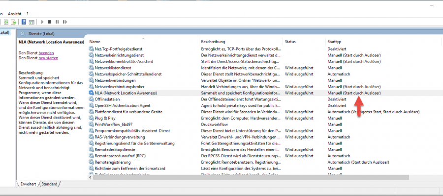 Sowie Dienste von anderen Diensten abhängig (Startreihenfolge) sein können.