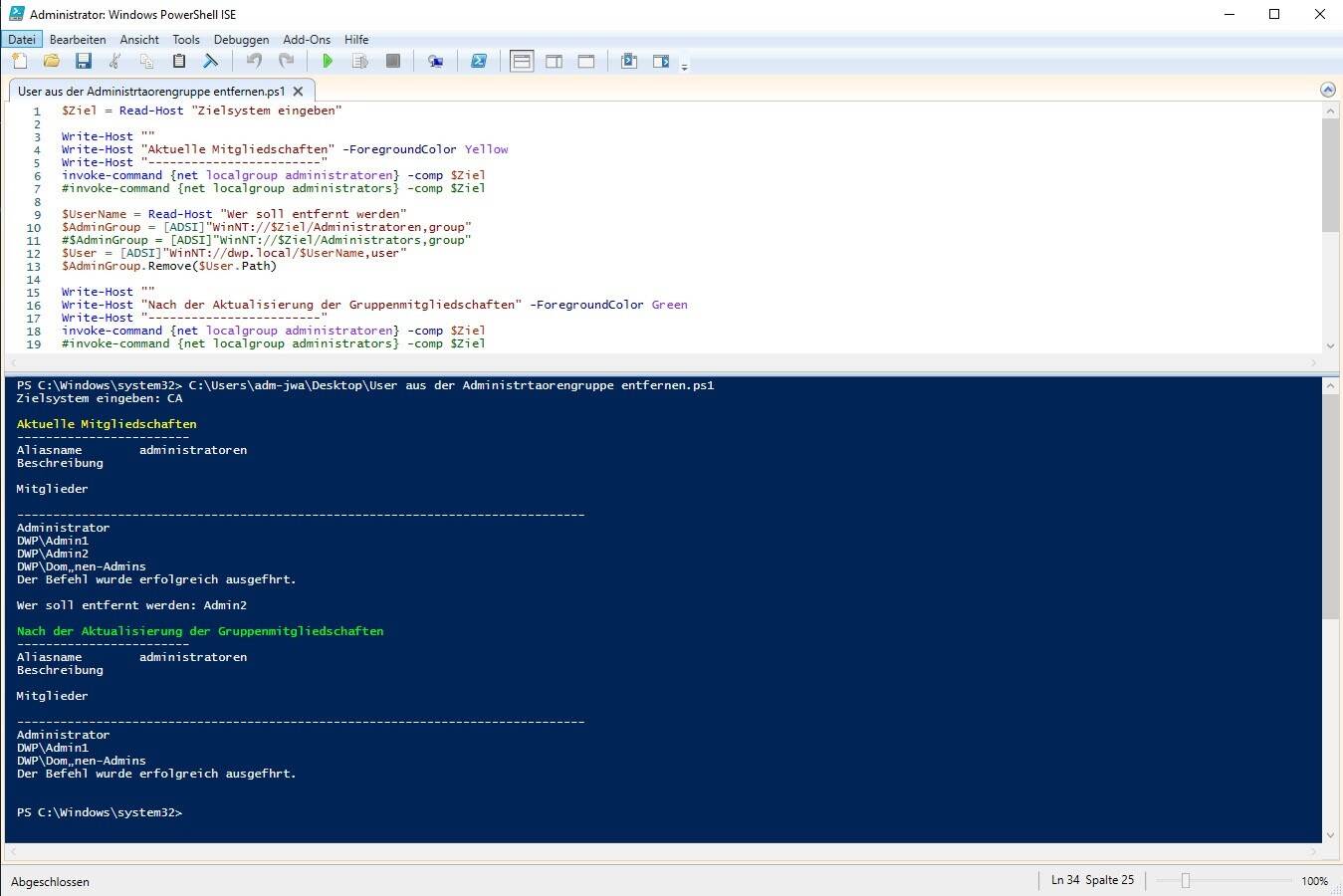 invoke-command {net localgroup administratoren} -comp $Ziel