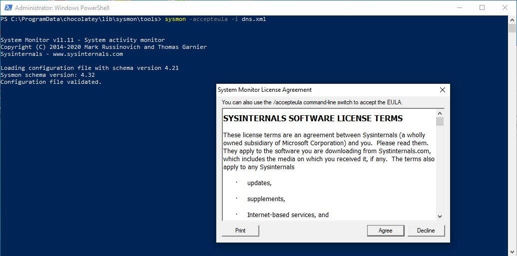 Um nun alle DNS-Abfragen in das Ereignisprotokoll schreiben zu können, installieren wir Sysmon mit einer vorkonfigurierten Datei. Auf diese Weise lassen sich auch unbekannte Abfragen oder Schadsoftware aufdecken.