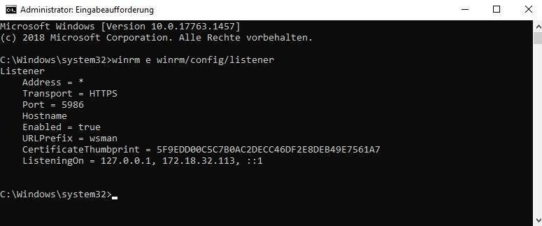 Eine kurze Überprüfung ergab, das auf dem entfernten Server (SRVSUBCA) die Einstellung so gesetzt ist, das nur auf dem Port 5986 (SSL) gelauscht wird.