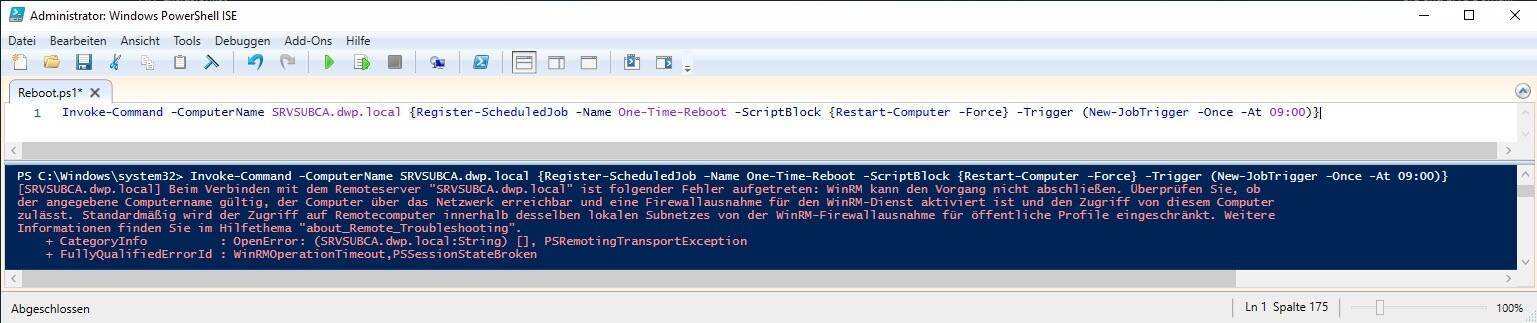 Der Domain Controller, von dem aus ich einen Task auf einem entfernten Server plane, gibt mir folgende Fehlermeldung aus: