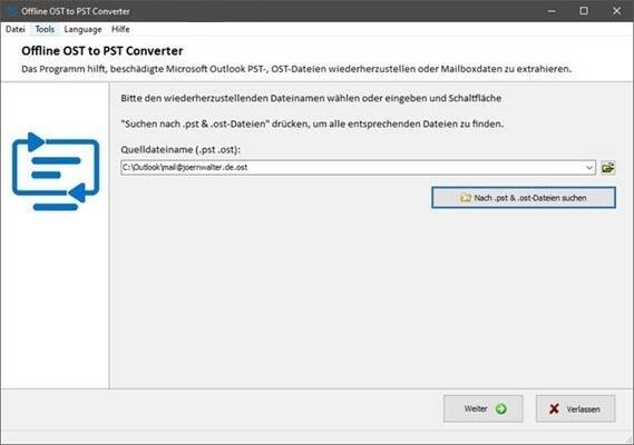 Wenn Du nicht weist wo die OST-Datei liegen könnte, dann klickst Du einfach auf den Button “Nach .pst & .ost-Dateien suchen”.