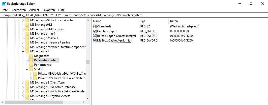 Nach dieser Änderung muss der Dienst Microsoft Exchange Information Store neu gestartet werden.