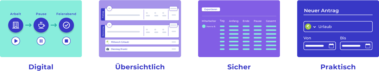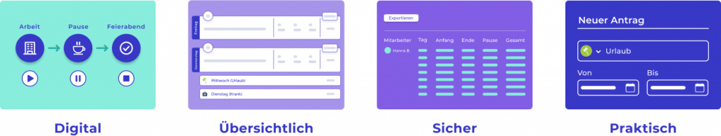 Umfangreiche Features und intuitive Bedienung ermöglichen die effiziente Verwaltung von Arbeitszeiten für Unternehmen jeder Größe