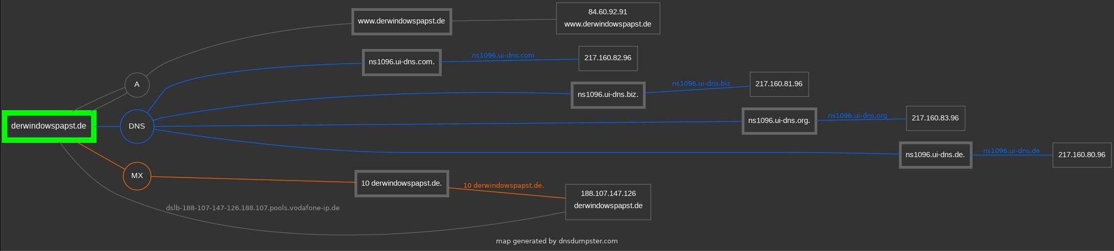 DNSdumpster ist ein kostenloses Domain-Recherche-Tool, mit dem Hosts gefunden werden können, die mit einer Domain verknüpft sind.