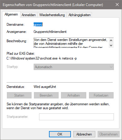 net start gpsvc