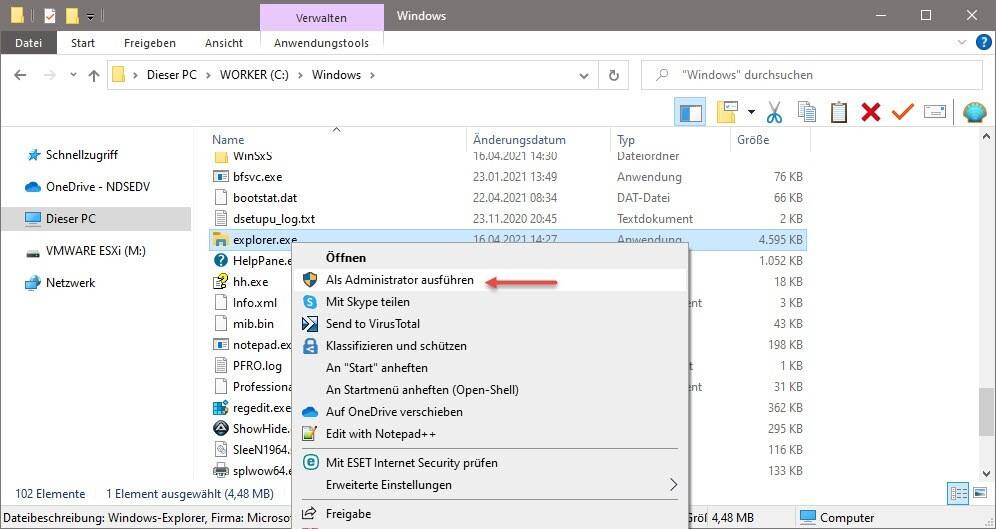 Sobald wir mit unserer Aufgabe fertig sind, sollte die erhöhte Instanz des Windows Explorer wieder beendet werden.