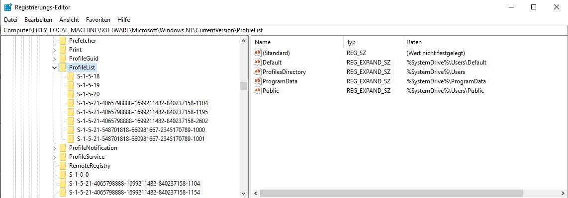 HKEY_LOCAL_MACHINE\SOFTWARE\Microsoft\Windows NT\CurrentVersion\ProfileList