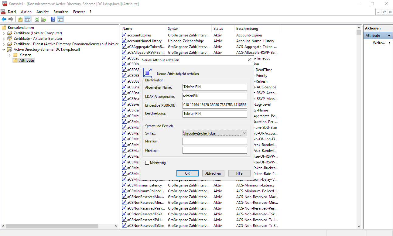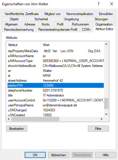 In diesem Beispiel fügen wir den Benutzern das Attribut Telefon-PIN hinzu. Diese Attribut soll dem Heldpdesk helfen, den hilfesuchenden am Telefon besser zu authentifizieren.