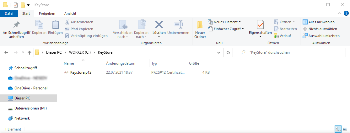 Der Keystore hat eine aktuelle Größe von 4 KB.