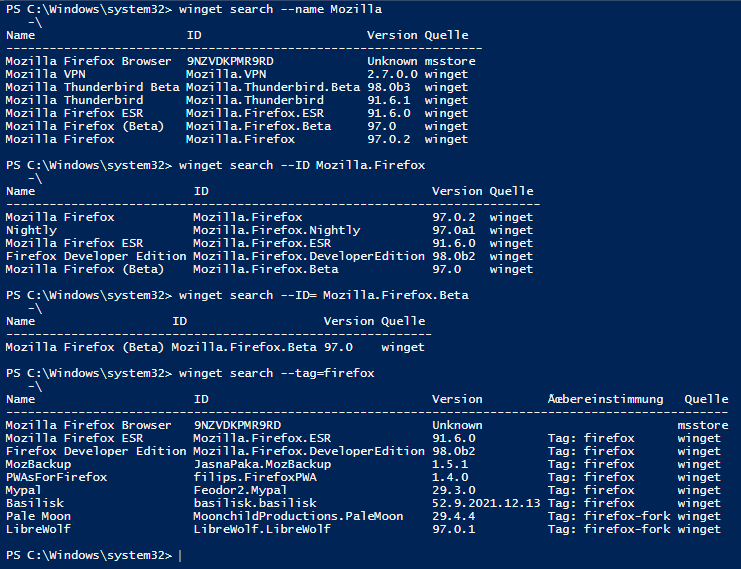 Es lassen sich mit WinGet Search auch Pakete in verschiedenen Richtungen suchen.