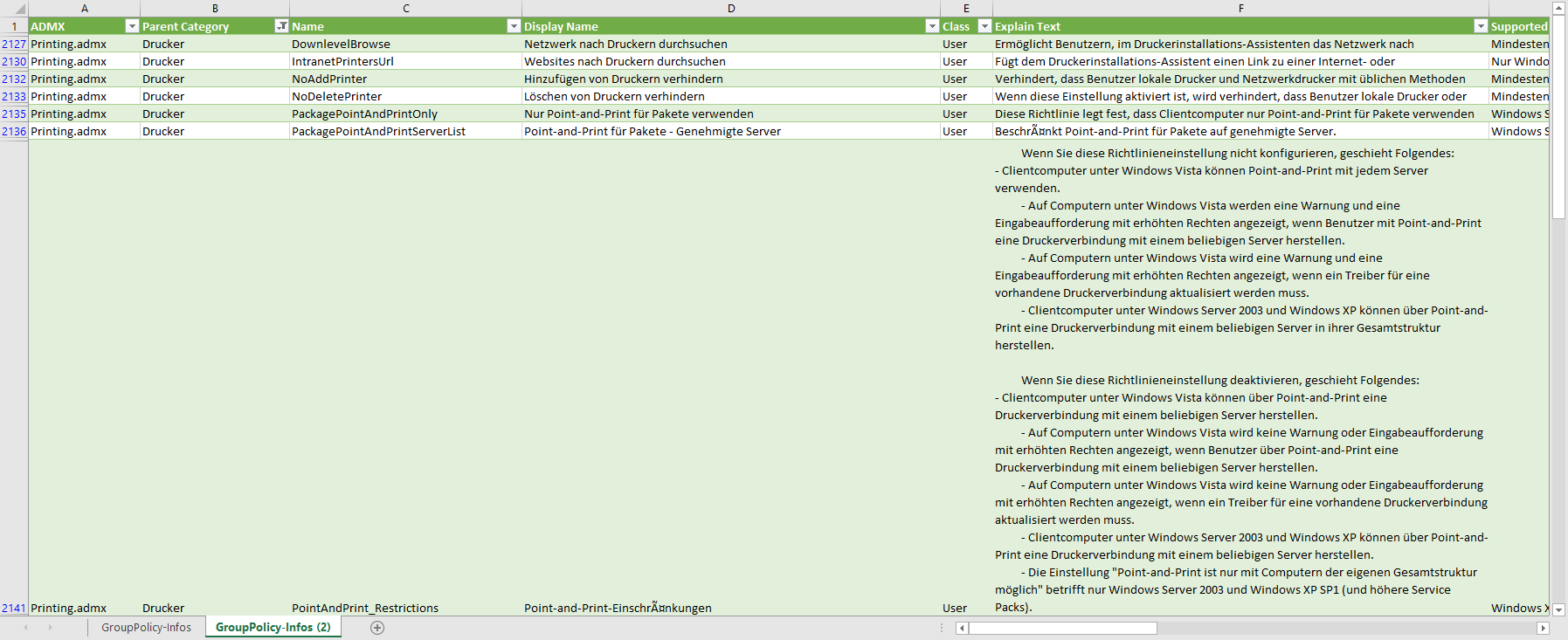 Mit diesem Powershellskript kann man die Beschreibungen von allen Richtlinien in Excel exportieren.