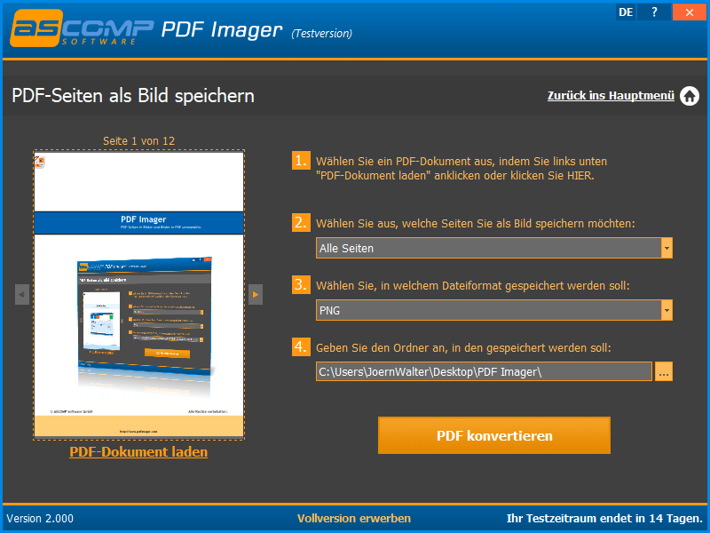Zur Demonstration bearbeite ich die Hauptseite des ursprunglichen PDF-Dokuments und konvertiere die Bilder anschließend wieder zurück in ein PDF-Dokument.