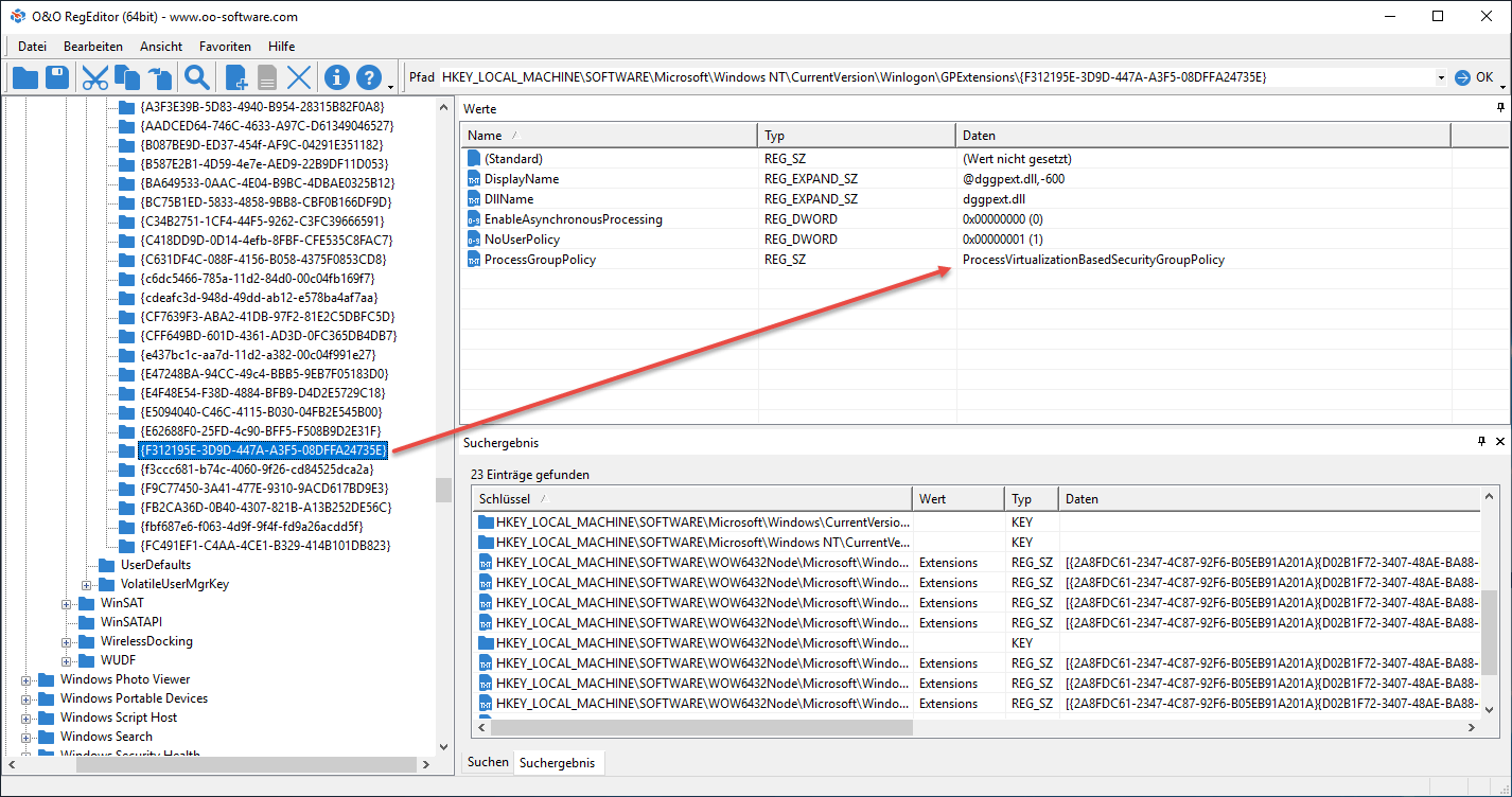 Mithilfe eines Reg-Editors suche ich aus dem Fehlerprotokoll nach der GUID {F312195E-3D9D-447A-A3F5-08DFFA24735E}. Das Ergebnis lässt vermuten, dass es etwas mit dem Thema Virtualisierung zu tun haben könnte.