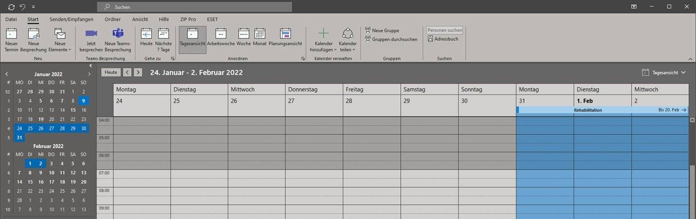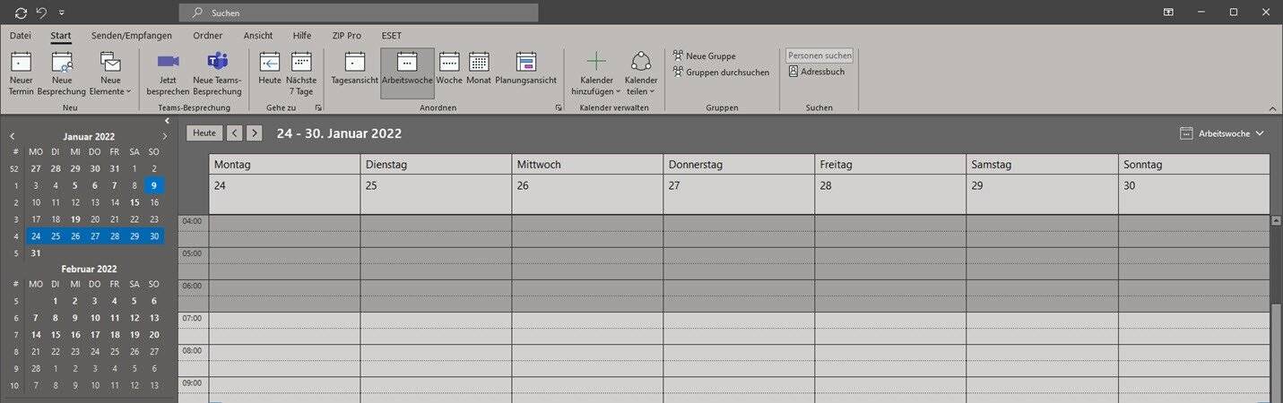 Die erweiterte Ansicht wird im Outlook-Kalender mit der Tastenkombination Alt + 0 aktiviert.