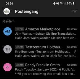Das Flag “Extern” hilft dabei zu erkennen, welche E-Mail von außerhalb der Organisation zugestellt wurde.