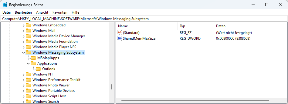 Mit dem Import des Registry-Keys werden die fehlenden Einträge erstellt.