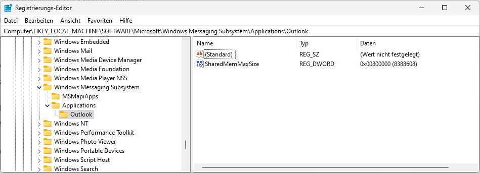 Nicht genügend Arbeitspeicher beim Speichern in Outlook-Ordnern
