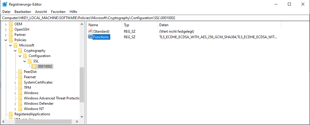 Folgende Einstellungen sollten am System vorgenommen werden, damit die Kommunikation mit dem Provider wieder funktioniert. Vorausgesetzt wird, das KB3140245 installiert ist. Das sollte in den meisten Fällen der Fall sein. Aber trotzdem bitte einmal überprüfen. Alternative könnt ihr aber auch das Tool IIS Crypto von Nartac nutzen, um die TLS-Einstellungen unter Windows 7 anzupassen. Danach bitte den Computer einmal booten.