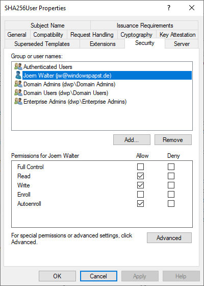 Berechtigung auf Zertifikatsvorlage prüfen automatisches Enrollment