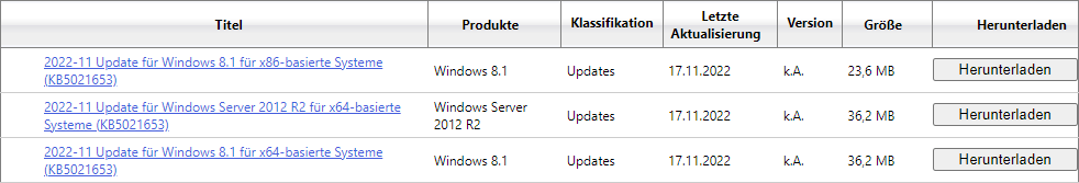 - Windows Server 2012 R2 DC: KB5021653 Direktdownload