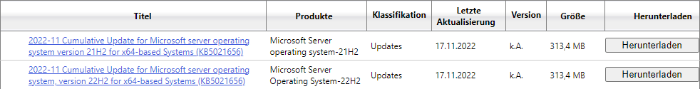- Windows Server 2022 DC: KB5021656 Direktdownload