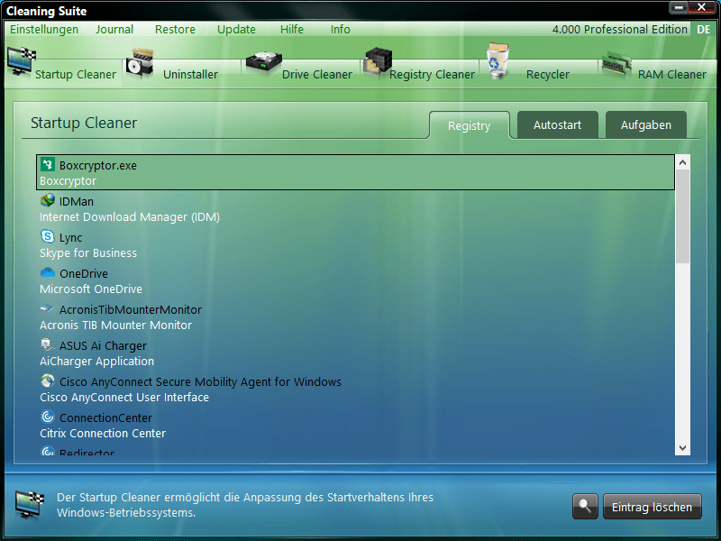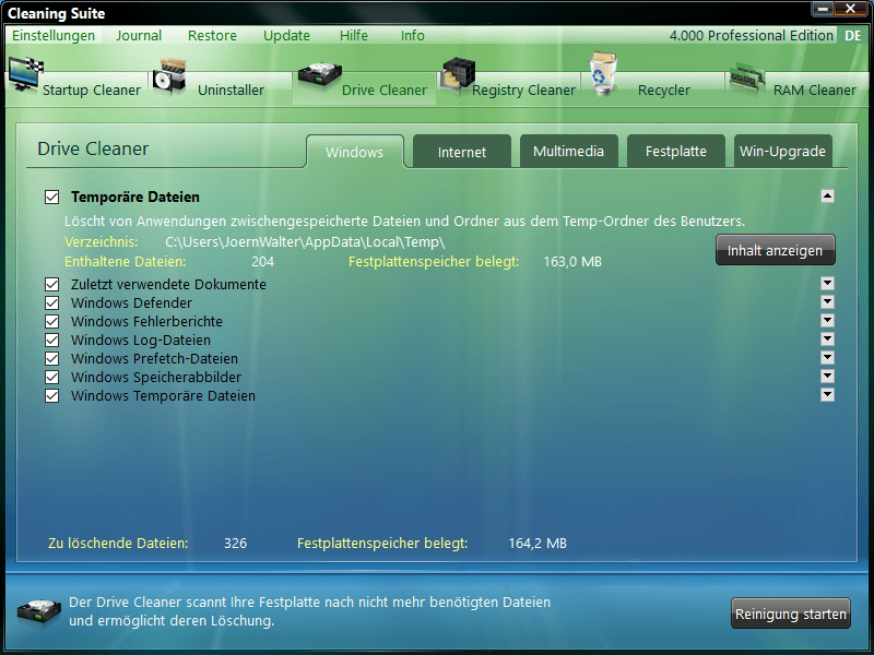 Was ich an der Cleaning Suite 4.005 gut finde, ist der Drive Cleaner mit den 5 Optionen zur Reinigung von