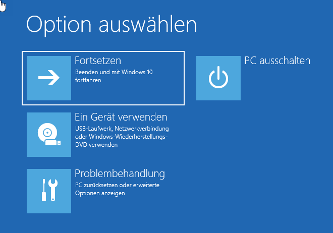 Ab diesem Zeitpunkt ist die Wiederherstellungsumgebung wieder verfügbar.