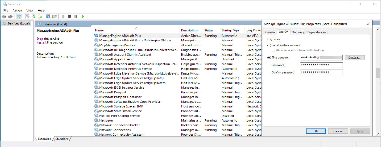 Applikationen laufen in der Regel mit einem technischen User, der ist in der Applikation auch hinterlegt. Zu der Applikation gibt es auch einen Service (Dienst). Hinterlegt war der Local System Account. Der Local System Account aggiert im Namen des Hosts.