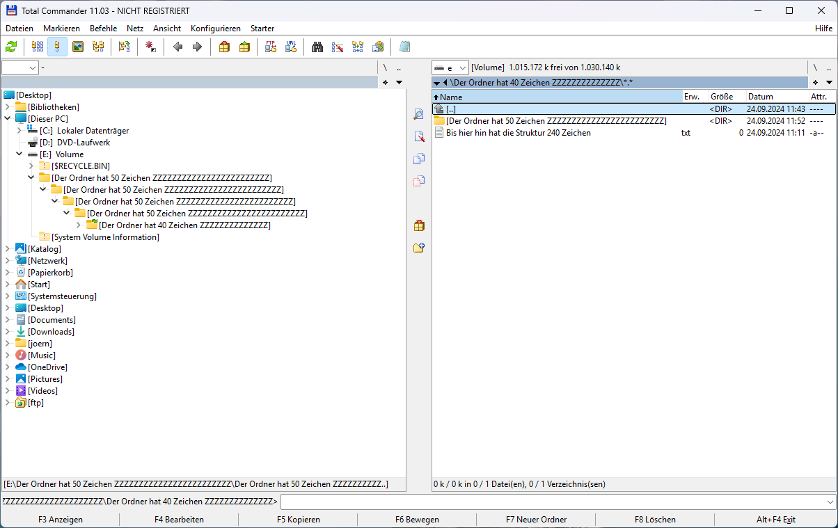 Der Windows Explorer ist aber weiterhin in der Lage in dieser Struktur mit Überlänge Dateien anzuzeigen und zu öffnen. Der Name des Ordners kann jedoch nicht geändert werden.